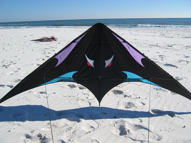 HistoryThe Sea Devil was the 10th kite I purchased used from a friend. I have one of the early "deluxe" models signed and numbered #16. Introduced in 2005 by Lam Hoac, this kite has generated quite a bit of interest in its first year. Many top US competitive fliers have switched entirely to the Sea Devil. It is a high aspect ratio kite that is a little faster and trickier than the Nirvana, but is in the same class in that it is truly capable of all the tricks, is very well balanced and handles exceptionally well in all positions. ConstructionThe Sea Devil is very well constructed. Though it is not made of Icarex like many other top kites (except for the UL model) the heavy gauge poly sail is remarkably strong and wear resistant. The trailing edge is very well reinforced to allow for roll-up and turtle maneuvers which the Sea Devil excels at. My deluxe model also features the competition nose, which is a special shiny material applied the whole length of the nose down past the yo-yo stoppers. This results in a perfectly smooth nose that is almost totally immune to snags during roll-ups. The 5 point spreaders and skyshark frame are strong enough for standard use, though I also have a set of optional 7 pt spreaders to use for high winds. The bridle is a cored dacron turbo bridle that stands up well to heavy use. TuningMy Sea Devil came with standard tail weights installed. I did add about 10g to it which helped a bit with fades and roll ups in high/bumpy winds. There was no noticeable loss of precision from the extra weight, and some owners have added considerably more tail weight to their Sea Devil's with good results. I have not needed to modify the bridle other than to add some extensions to it to avoid wear during yo-yo's. In FlightThe Sea Devil is an outstanding performer with a well deserved reputation. Low wind performance - down to about 4mph - is surprisingly good considering it is a very high aspect kite. However, the kite is equally at home in fairly high winds, and I prefer it slightly over my Nirvana in higher winds. Pull does not increase dramatically with wind speed, so the kite is still able to do many tricks well in the 10-15 mph range, even without wind brakes. The Sea Devil requires smaller inputs than the Nirvana, but is still very predictable in all positions and to all inputs. The speed and tempo of the kite is a bit quicker and it "feels" smaller than the Nirvana - reacting a bit more like my STX 2.1 than a larger kite. However in proper conditions you can slow it down quite a bit - so perhaps it is somewhere in between the STX 2.1 and Nirvana in terms of speed and tempo. It does not have the same slow motion grace of the Nirvana during axel maneuvers, but it has significant advantages in yo-yo and backspin maneuvers. I would place the Sea Devil just a hair behind the Nirvana for precision. While the Sea Devil will track a line with ease, and corners well it is just a tiny bit more sensitive than the Nirvana in cornering and tracking. That does not mean it is any slouch - you can easily fly a precision pattern with the Sea Devil and it has no tendency to oversteer, even with substantial tail weight. Axels are smooth and predictable. It does require a bit of setup for a full 360 axel, but with proper slack management even very slow axels are possible. Spin axels, coin toss and other axel maneuvers can be done either slow or fast. The 540 looks great with any reasonable setup. Turtle maneuvers are easy to enter and exit. The Sea Devil performs very well on its back - making lazies and multilazies a snap. Fade performance is also very stable and easy to enter - either from a broken axel or pancake. The Sea Devil backspins a little easier than the Nirvana and it is not hard to do a dozen or more spins without losing much altitude. The Sea Devil also excels at yo-yo and pitch maneuvers - performing these in a blink of an eye. For example on a lateral roll from a fade can snap into a yo-yo with one quick snap, and the kite pitches so fast it will be recovering before you even realize it has rolled up. With the deluxe nose, it is also easy to hit the yo-yo stoppers every time - the line just slides right into place. Overall ImpressionA worthy new competitor for the Nirvana in the battle for top kite. Quick, agile and tricky it provides the alter ego to the slower, large-input Nirvana. The Sea Devil requires slightly smaller inputs, rolls up faster, yet still has remarkable performance in every position and every trick. It has its own feel quite distinct from other top kites. Like the Nirvana, the Sea Devil is truly a "jack of all trades" in the kiting world. The kite has remarkably good precision and tracking, smooth cornering, stops on a dime, yet transitions into tricks quickly. Inputs and reactions are measured and predictable in every case. Better than the Nirvana? It really comes down to personal taste - the character of the Sea Devil is much different than the Nirvana. The Sea Devil sports slightly smaller inputs, faster rollups, a bit of a smaller kite feel, while retaining all of the capability you can pack into a top tier competition kite. The Nirvana has larger inputs, slower tempo, larger "graceful" feel and a longer history in competition but does not roll up or backspin as quickly. They are both clearly in the "world's best kite" class. I learn different lessons from each one every time I fly them, and would not necessarily trade one over the other. I also have this lingering feeling that the Sea Devil might provide just a bit more room to grow than the Nirvana - though I don't yet have the skills to fully exploit the potential that is there. Pro